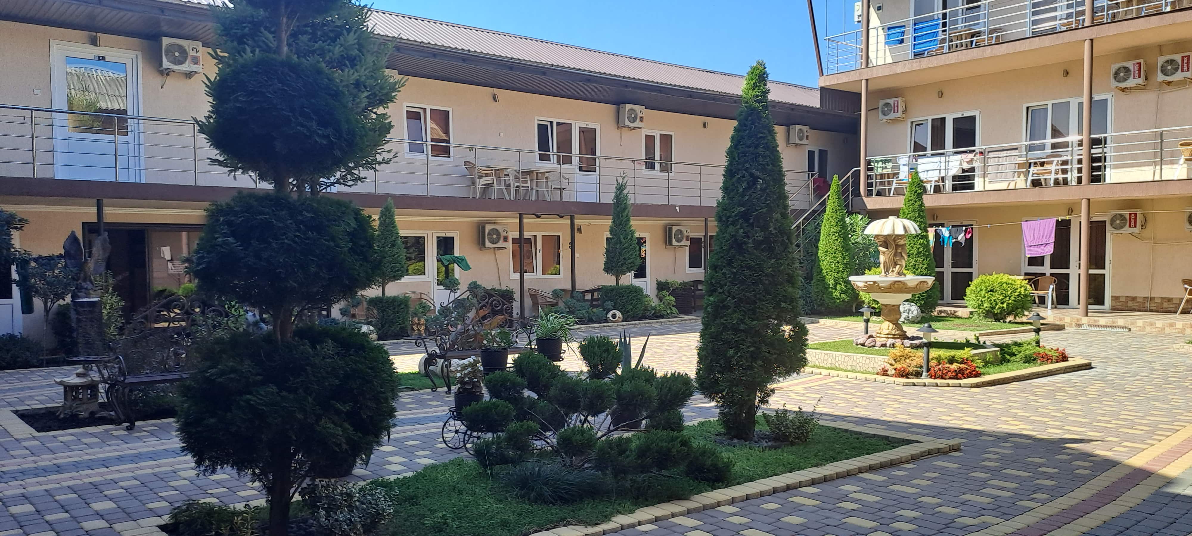 Номера: 2х и 3х местные номера В номерах : необходимая мебель , ТВ, холодильник, сплит система, туалет (туалетные принадлежности), душ, столы и стулья на общих балконах.